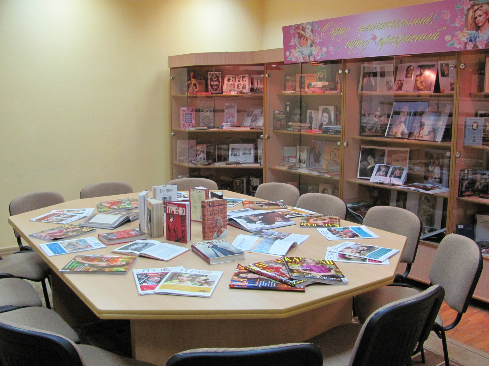 Книжная выставка «Образ пленительный, образ прекрасный!» расскажет Вам об образе женщины в литературе и искусстве, а также о знаменитых представительницах прекрасного пола. Первый стенд выставки посвящён образу женщины в мировой истории. В первую очередь хочется обратить внимание на книгу «Мировая история женщины» С. Т. Фатыхова. Автор предлагает концептуализацию огромного фактографического материала, сквозь призму истории женщины отражающего развитие всего человечества.