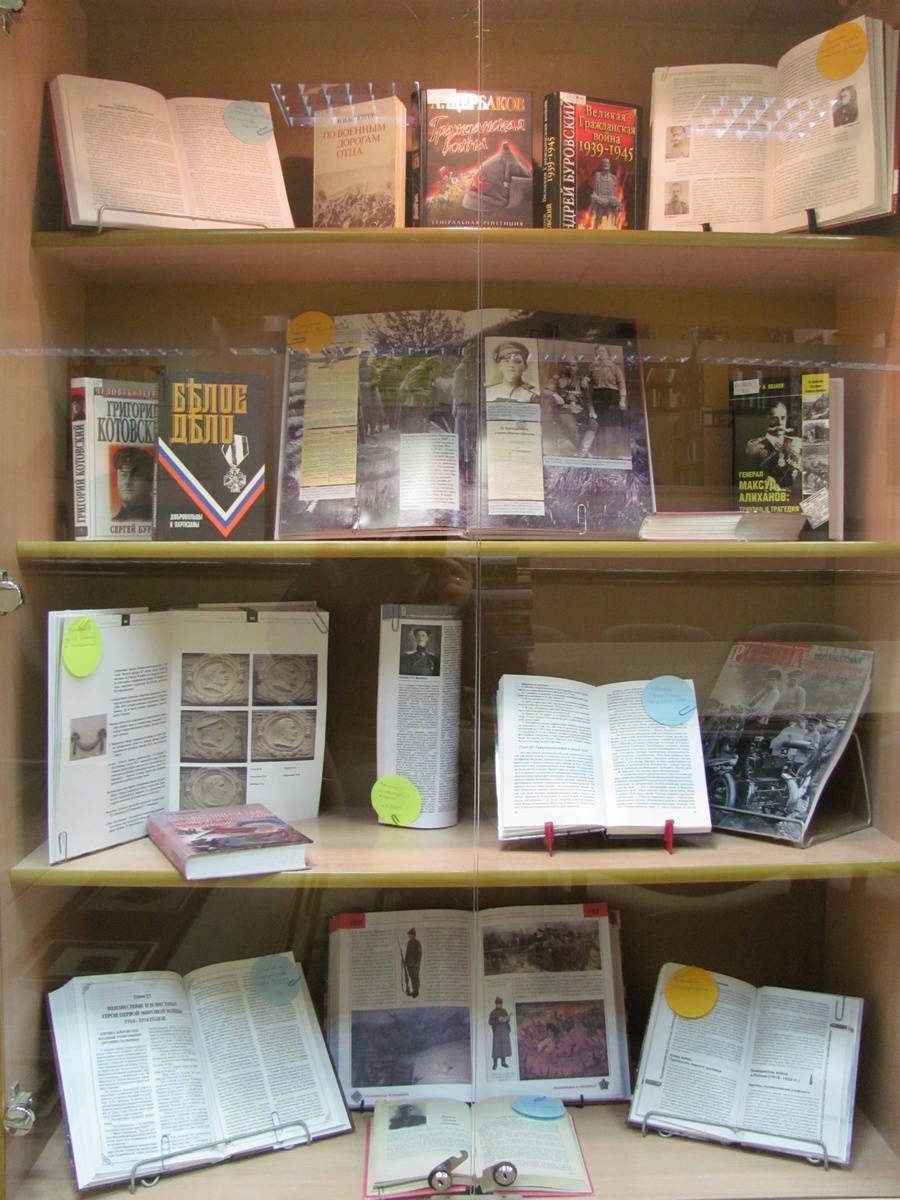 Героям Гражданской войны посвящён следующий раздел экспозиции. Много потерь было среди солдат и Белой и Красной армии, каждая сторона по-своему защищала свою страну и свои идеалы. В разделе представлены книги, освещающие биографии военачальников обеих сторон.