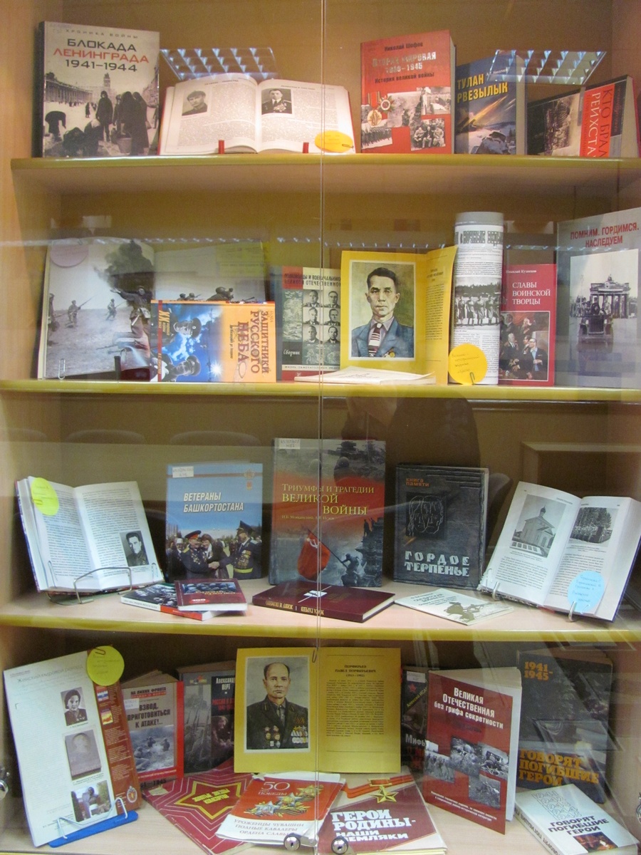 В четвертом разделе выставки представлены многочисленные герои Великой Отечественной войны. Свой вклад в победу внесли и рядовые солдаты, и руководящий состав. Книга известного писателя Владимира Карпова «Маршал Жуков. Его соратники и противники в дни войны и мира» представляет собой монументальное и величественное полотно, в центре которого — Георгий Константинович Жуков. О другом знаменитом маршале — Константине Константиновиче Рокоссовском рассказывает в своей книге А. Ф. Корольченко. В документальной повести под названием «Легенда советской разведки» Т. К. Гладков описывает деятельность выдающегося разведчика Николая Кузнецова.