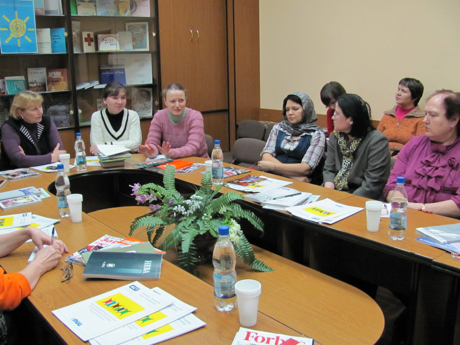 17 февраля 2012 года в ГКУК СО «Свердловская областная межнациональная библиотека» была организована встреча представителей сектора образования. Форматом данного мероприятия был назван круглый стол, что позволило не только заслушать выступления гостей, но и принять активное участие в обсуждении заявленной темы: «Проблема толерантности и экстремизма в подростковой среде».