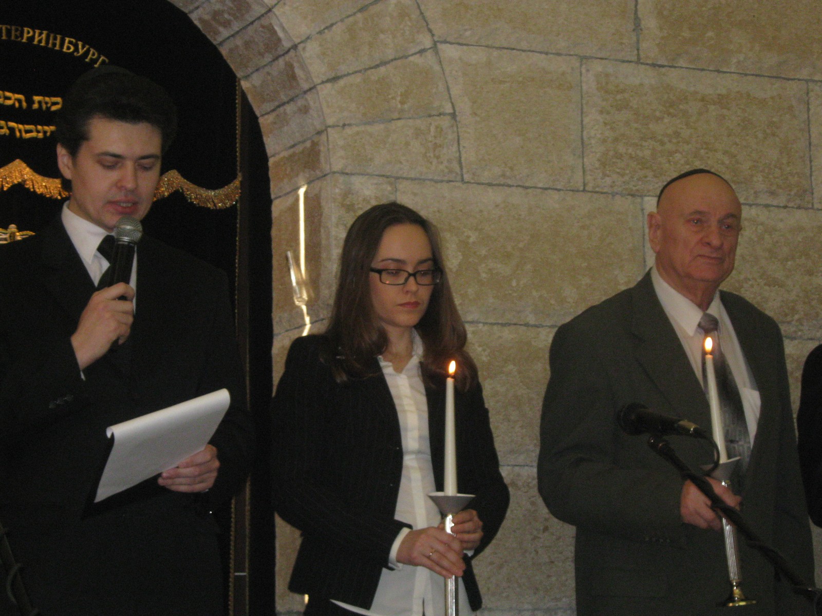 Участники мероприятия зажгли свечи в память о 6 миллионах евреях — жертвах Холокоста. Главный раввин г. Екатеринбурга и Свердловской области Зелиг Ашкенази прочитал поминальную молитву.
