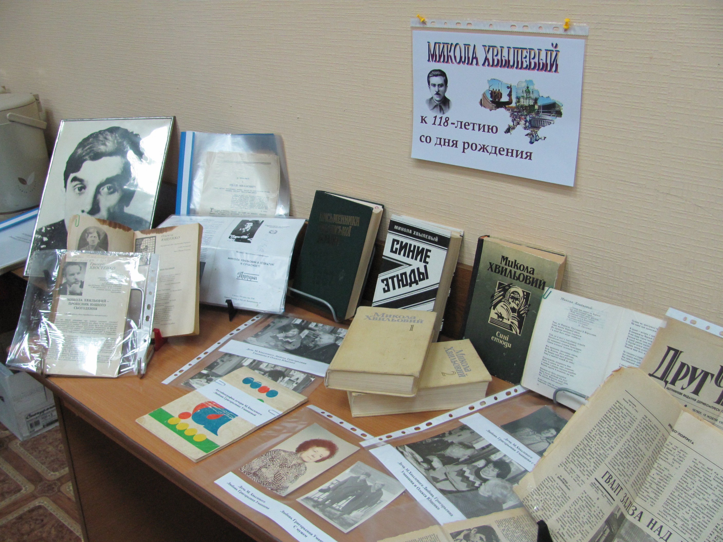 - 2-томник произведений М. Хвылевого, изданный киевским издательством, а также «Синие этюды» — первая книга Хвылевого, вышедшая на русском языке, на выставке представлена на двух языках.