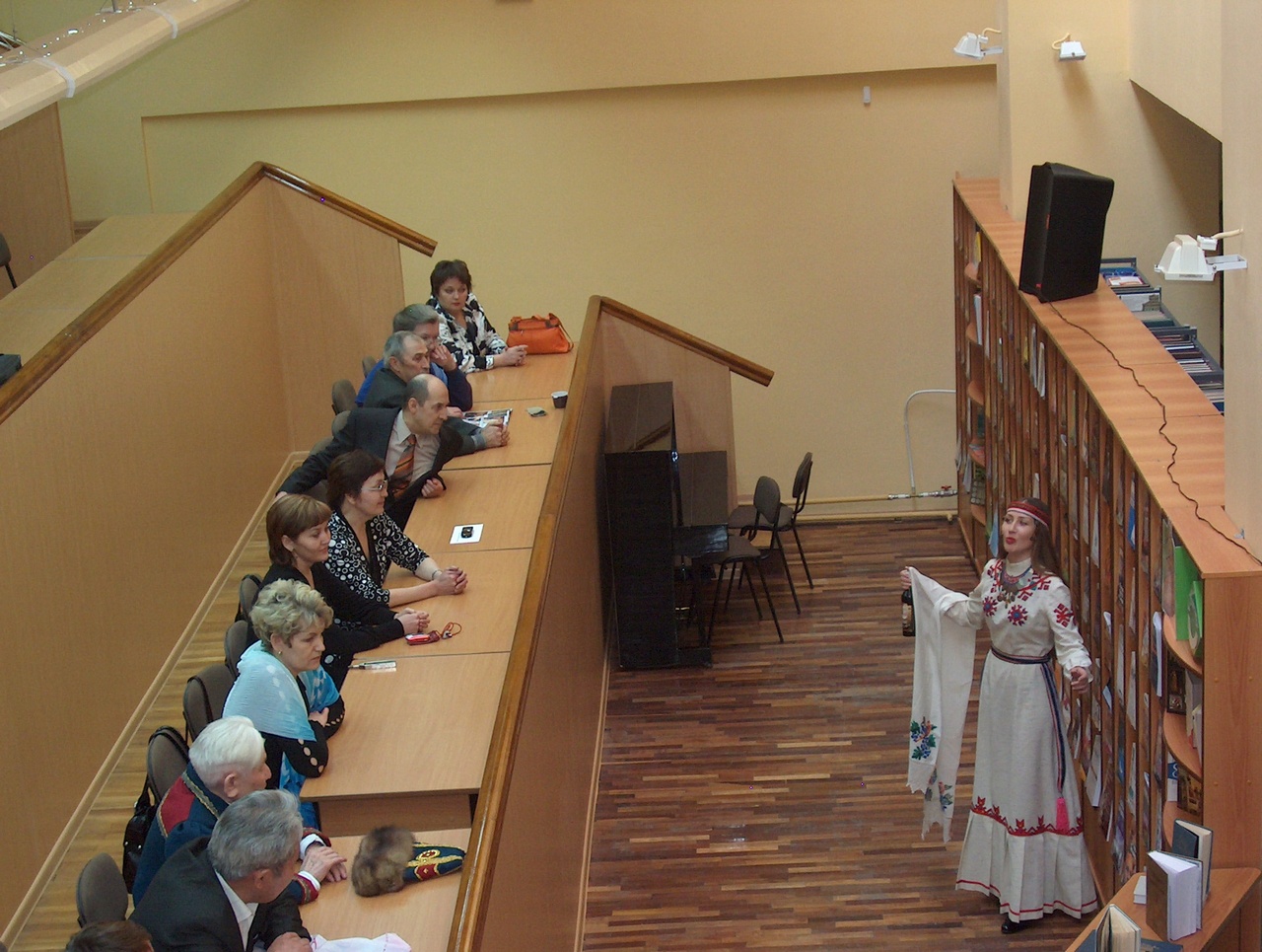Вечер был посвящен представлению о мире, культуре, природе, пейзаже различных народов и отражения своего мироощущения в творчестве. Звучали произведения таких авторов как Н. Рубцов (русский поэт), В. Владыкин (удмуртский поэт), А Ванеев (коми поэт), Р. Паль (башкирский поэт) и многих других. Ведущей программы В. И. Дорошенко — библиотекарю абонемента СОМБ помогали Таня Журавлева и Валя Цупикова — читатели нашей библиотеки. В исполнении студентов Уральской государственной консерватории им. М. П. Мусоргского, с которой сотрудничает библиотека, Булдешевой Натальей и Салаватом Гулевым были исполнены музыкальные произведения Векерлена, Шахгаудяна, Брусиловского.