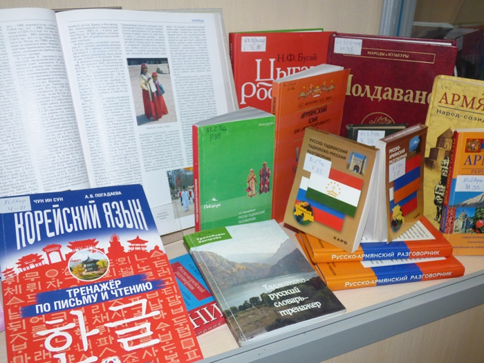 В данном разделе книжной выставки представлены также словари, справочники и разговорники на украинском и белорусском языках.